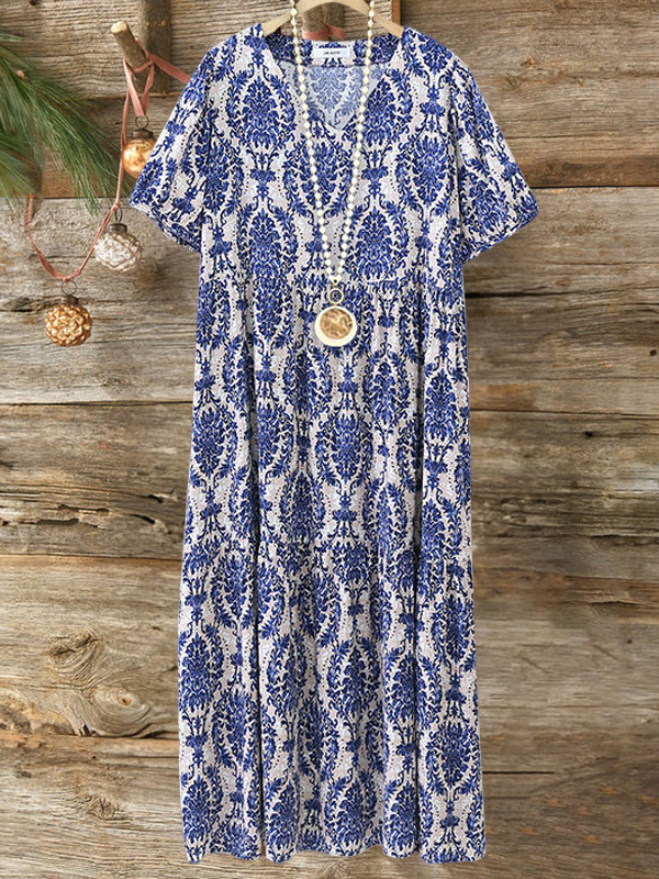 This holiday fashion dress uses special style printing, V-neck design and waist shirring design to perfectly modify the figure. Rayon fabric is not stuffy when worn in summer. The dress is very suitable for leisure travel!